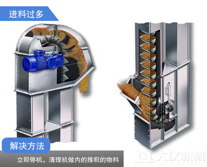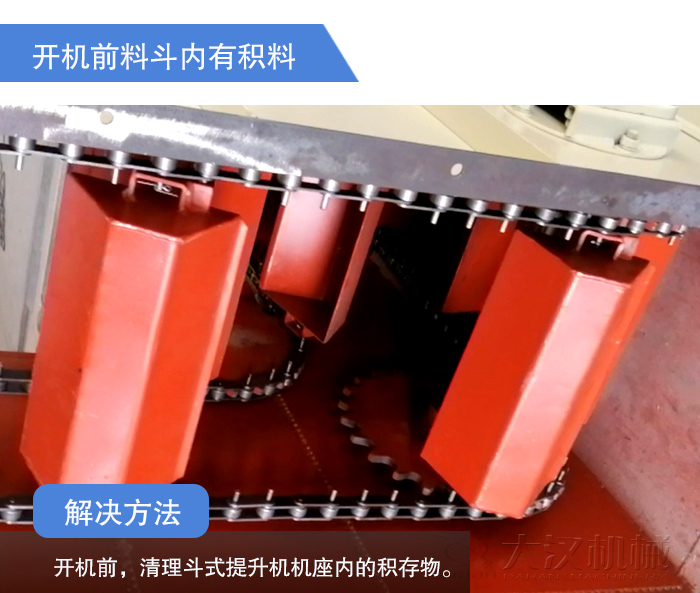 解決辦法:開機(jī)前,清理斗式提升機(jī)機(jī)座內(nèi)的積存物。