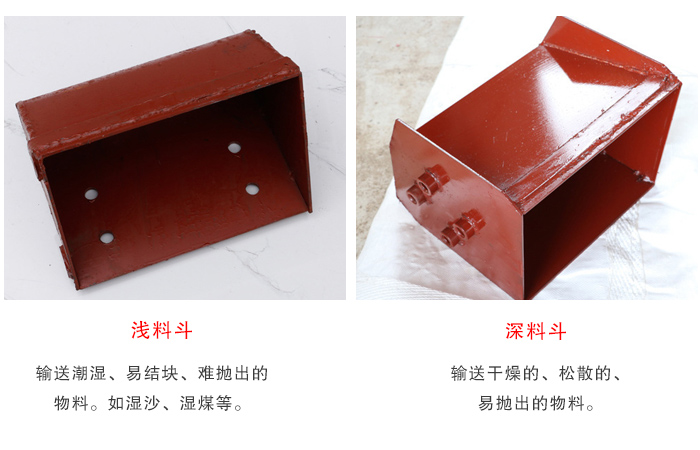 4.深料斗:輸送干燥的、松散的、易拋出的物料。如水泥、煤塊、碎石、石英砂等。