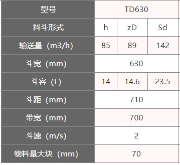 1.表中斗容為計算斗容,輸送量按填充系數(shù)0.6計算得出。