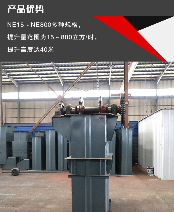 NE斗式提升機(jī)在各工業(yè)應(yīng)用廣,正在逐步淘汰HL型等環(huán)鏈?zhǔn)教嵘龣C(jī)。該系列為流入式喂料,物料流入料斗內(nèi)靠板鏈提升到頂端,在物料重力作用下自行卸料。NE系列板鏈?zhǔn)蕉肥教嵘龣C(jī)共有11種型號(hào):NE15、NE30、NE50、NE150、NE200、NE300、NE400、NE500、NE600、NE800。