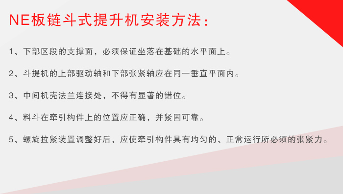 2、斗提機(jī)的上部驅(qū)動(dòng)軸和下部張緊軸應(yīng)在同一垂直平面內(nèi)。