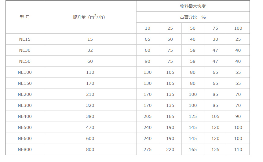 7.輸送能力大,該系列提升機(jī)具有NE15~NE800多種規(guī)格。提升量范圍為15~800m3/h 。